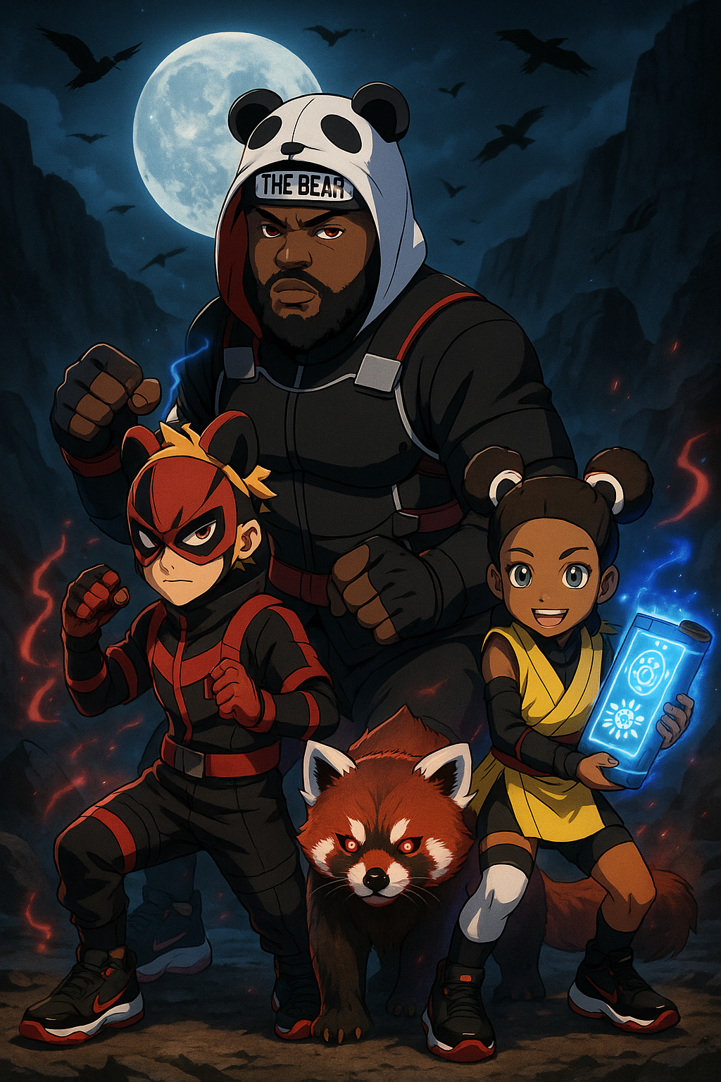 Panda Mask Night Squad T-Shirt — Cute Cartoon Animal Heroes Tee